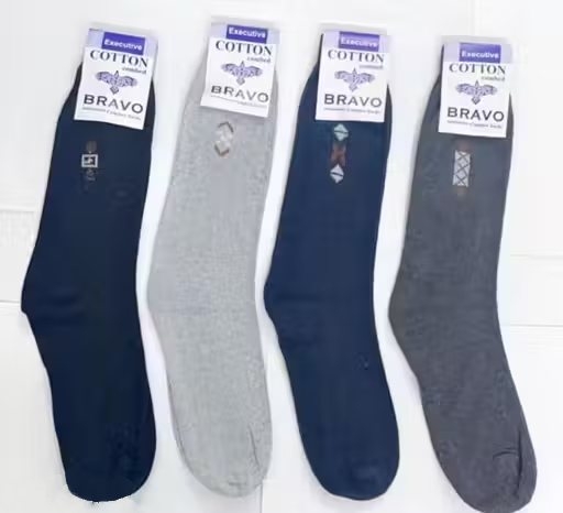 Men’s Plain Cotton Long Length Socks – Pack of 4 (Multicolor)